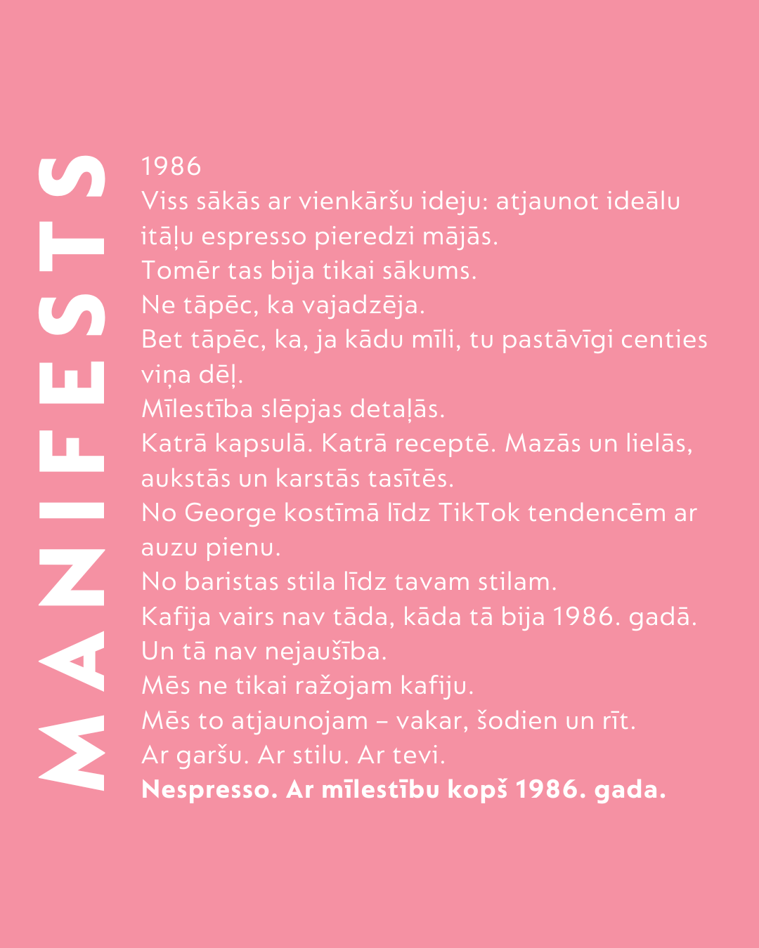 Kopā mēs svinam mūsu mīlestību pret kafiju un visus, kas atklāj Nespresso savā veidā, jo tieši viņi mūs iedvesmo turpināt virzīties uz priekšu.