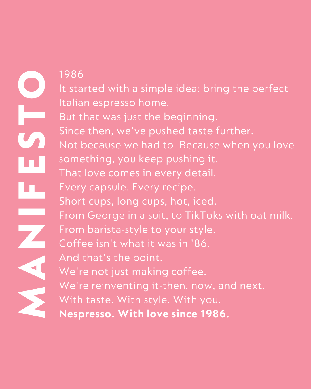 Celebrating together our passion for coffee and the role that they had in our constant reinvention. Highlighting their own ways of enjoying a Nespresso coffee.