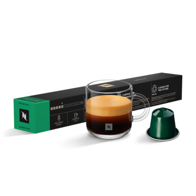 Capriccio is an Espresso with a balanced bouquet, a light acidity and a very characteristic cereal note. It is composed of Arabicas from South America including Brazil, in ideal proportions, and a touch of lightly roasted Robusta.
