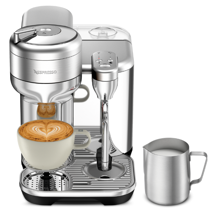 With a wide range of coffee options made for different cup sizes, you can indulge in black coffee or create your own milk recipes. Enjoy all your favorites, from small Flat Whites to large Cappuccinos. The integrated steam pipe lets you froth your milk and personalize your recipes or try your hand at latte art. You’ll even have the choice between three different temperatures and textures, for coffee and milk that’s always to your taste. All in a premium, stainless-steel design that would fit right in behind a barista’s counter.