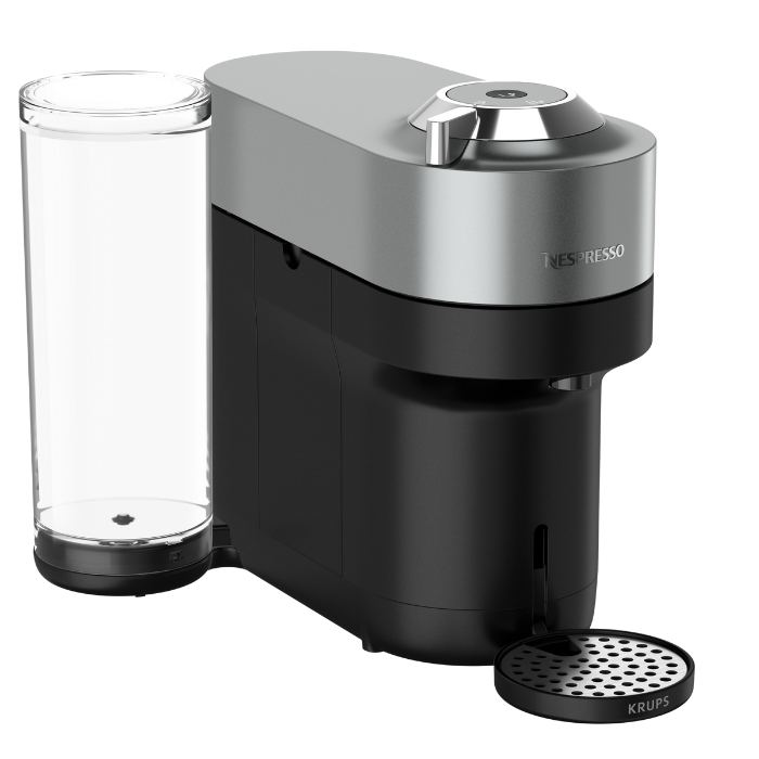 With its sleek design and elegant metallic finishing in Silver, Vertuo Pop+ makes a bold statement to match your style. With five cup sizes, from ristretto (25 ml) to Mug (230 ml) coffee, simply choose your Vertuo capsule, pop it in, and you’re away at the touch of a button. Krups Vertuo Pop+ uses the patented Centrifusion™ Technology that reads the code on each capsule and adjusts the settings to extract the hidden treasures of your coffee. To make your coffee right, every time. The Vertuo Pop+ has a large water tank (1.1 L) accessible from the side. Its adjustable drip tray offers two positions in order to accommodate bigger mugs. All in a compact design, that’s made from 29% recycled plastic. For a coffee journey, with a Pop+.