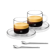 Go big even for small coffee moments with this Vertuo Espresso set. It comes in twos, with two Espresso cups (ca. 80 ml), two spoons and two saucers. Made out of tempered glass and rounded shapes, the cups will keep your Espresso warm, and sit comfortably in your hand. For an Italian coffee moment, every day.