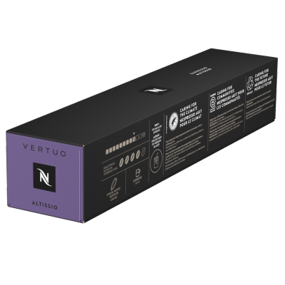 Kāpēc mums tas patīk: jūs noteikti pamanīsiet Altissio klātbūtni. Dienvidamerikas arabikas un nedaudz robustas piešķir kafijai piesātinātu, izteiktu espreso garšu. Mēs sabalansējām šīs šķirnes ar Kostarikas arabiku, kas piešķir tām maigu graudu aromātu. Šīs arabikas un robustas kafijas tiek intensīvi un īsi grauzdētas, lai izceltu to piesātināto raksturu. Altissio ir Vertuo espreso kafija, kas ietērpta biezās, samtainās putās ar grauzdējuma notīm un maigu un krēmīgu graudu aromātu.