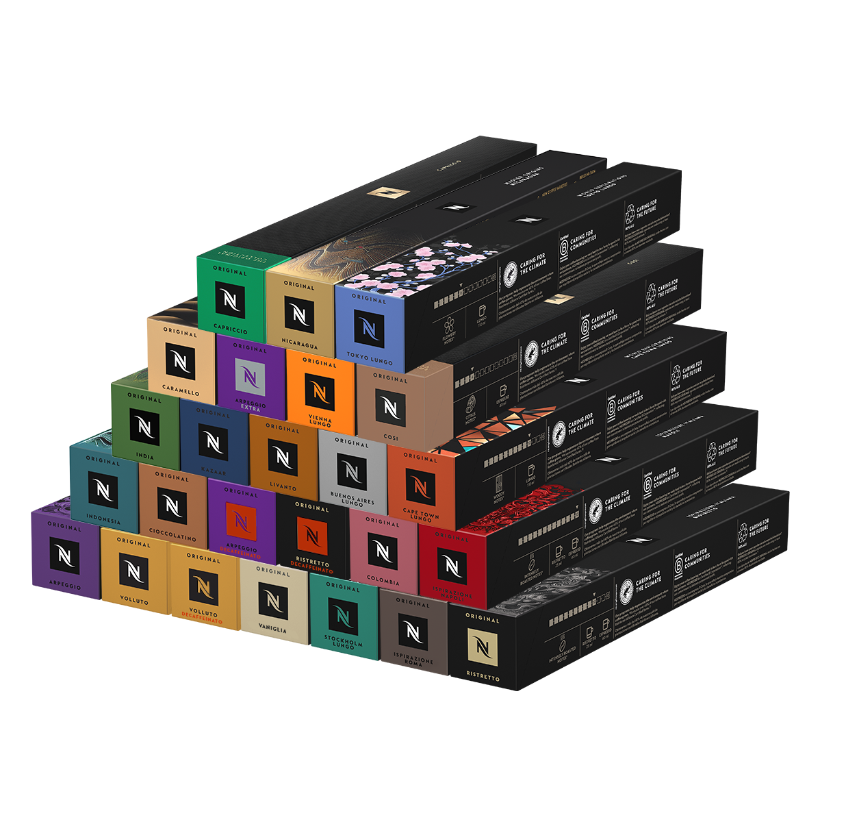 Dodieties kafijas garšu atklāšanas piedzīvojumā un ļaujiet sev baudīt plašu garšu klāstu, ko piedāvā Intense, Flowery-Fruity vai Flavoured kafijas ģimenes. Izvēlieties savu iecienīto kafiju, novērtējiet, kā tā izskatās, ieelpojiet aromātu un izbaudiet garšu.