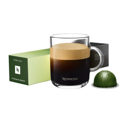 Kāpēc mums tas patīk: Stormio ir tumši grauzdēts maisījums, kas aizrauj ar neskaitāmiem aromātiem. Bet kā visu šo spēku iespējams iegūt tikai no arabikas šķirnes kafijas? Ilgstoša, lēna grauzdēšana pastiprina Nikaragvas un Gvatemalas arabikas pupiņu graudu aromātus līdz pat garšvielu un koksnes notīm. Tās visas ir lielā augstumā audzētas arabikas šķirnes kafijas, kurām mēs piešķiram dziļāku grauzdējumu, lai tās iegūtu bagātīgu intensitāti. Taču šis Vertuo kafijas maisījums ir vienmērīgs un piesātināts. Piens var padarīt Stormio maigāku, taču jūs joprojām sajutīsiet spēcīgas grauzdētas garšas notis, kas aizraus jūs kā vētra.