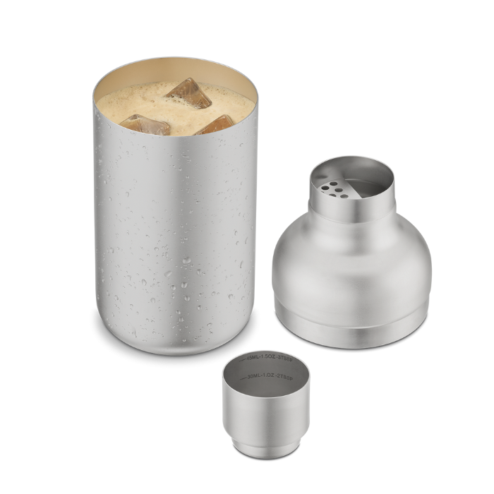Ar Nespresso Barista šeikeri, varat pagatavot dzērienus pēc savas gaumes. Saglabājiet kafijas vienmērīgo garšu, pateicoties šeikerī iebūvētajam pusfiltram, vai arī piejauciet vairāk sastāvdaļu saviem kafijas šedevriem, vienkārši sakratot šeikeri. Elegants dizains ar taisnām līnijām un matēta apdare, turklāt, pateicoties 600 ml tilpumam, varēsiet viegli pagatavot dzērienus ar ledu.