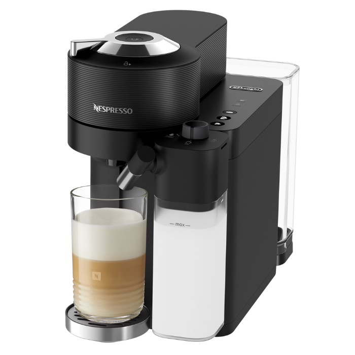 Nespresso Vertuo Lattissima ar integrētu piena sistēmu ar vienu pieskārienu apmierina jebkuru kafijas vēlmi. Nospiediet pogu un baudiet melno kafiju vai kafiju ar piena putām. No mazās espresso tasītes līdz lielajai latte macchiato tasei – jūs varat viegli pagatavot jebkuru recepti. Izvēlieties vēlamo Vertuo kafijas kapsulu, ievietojiet to un baudiet garšīgu kafiju, vienkārši nospiežot pogu.